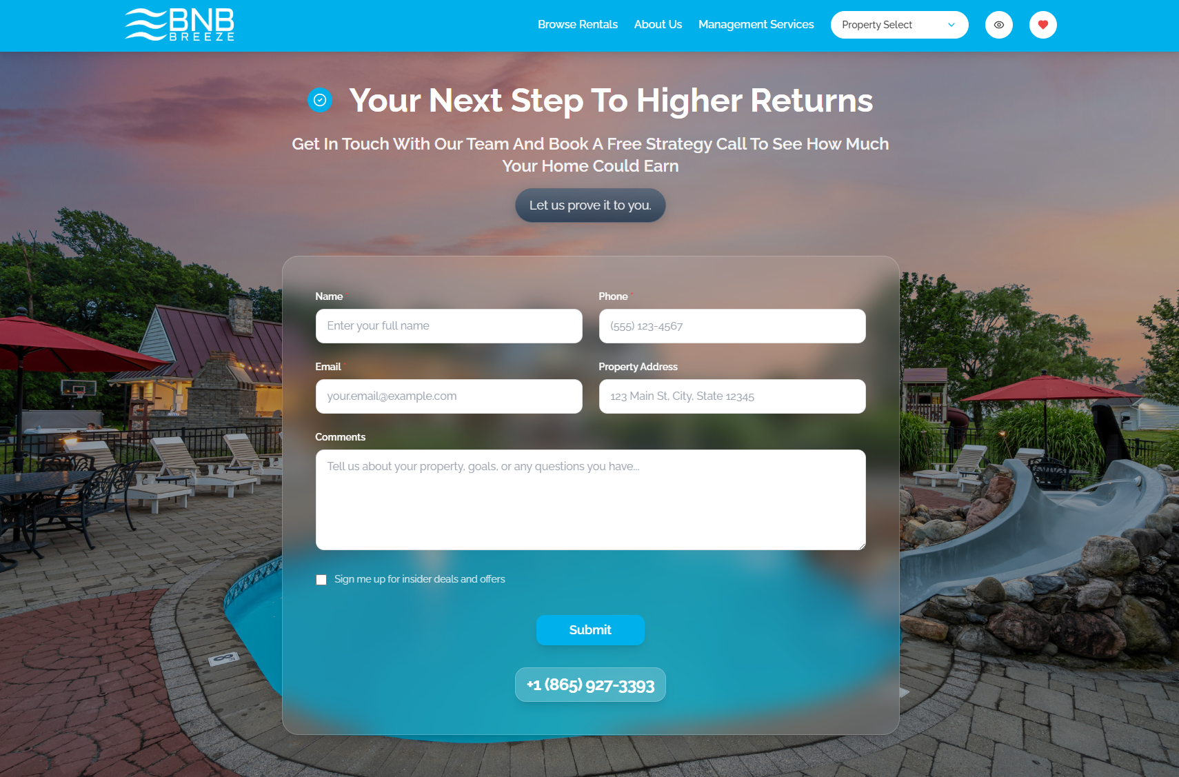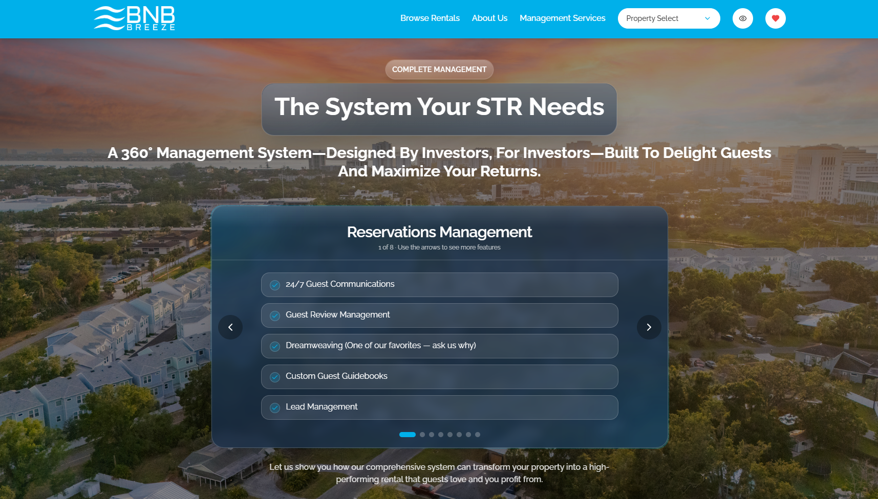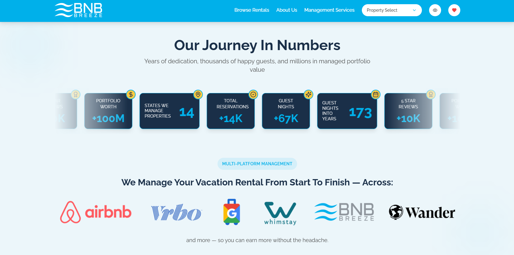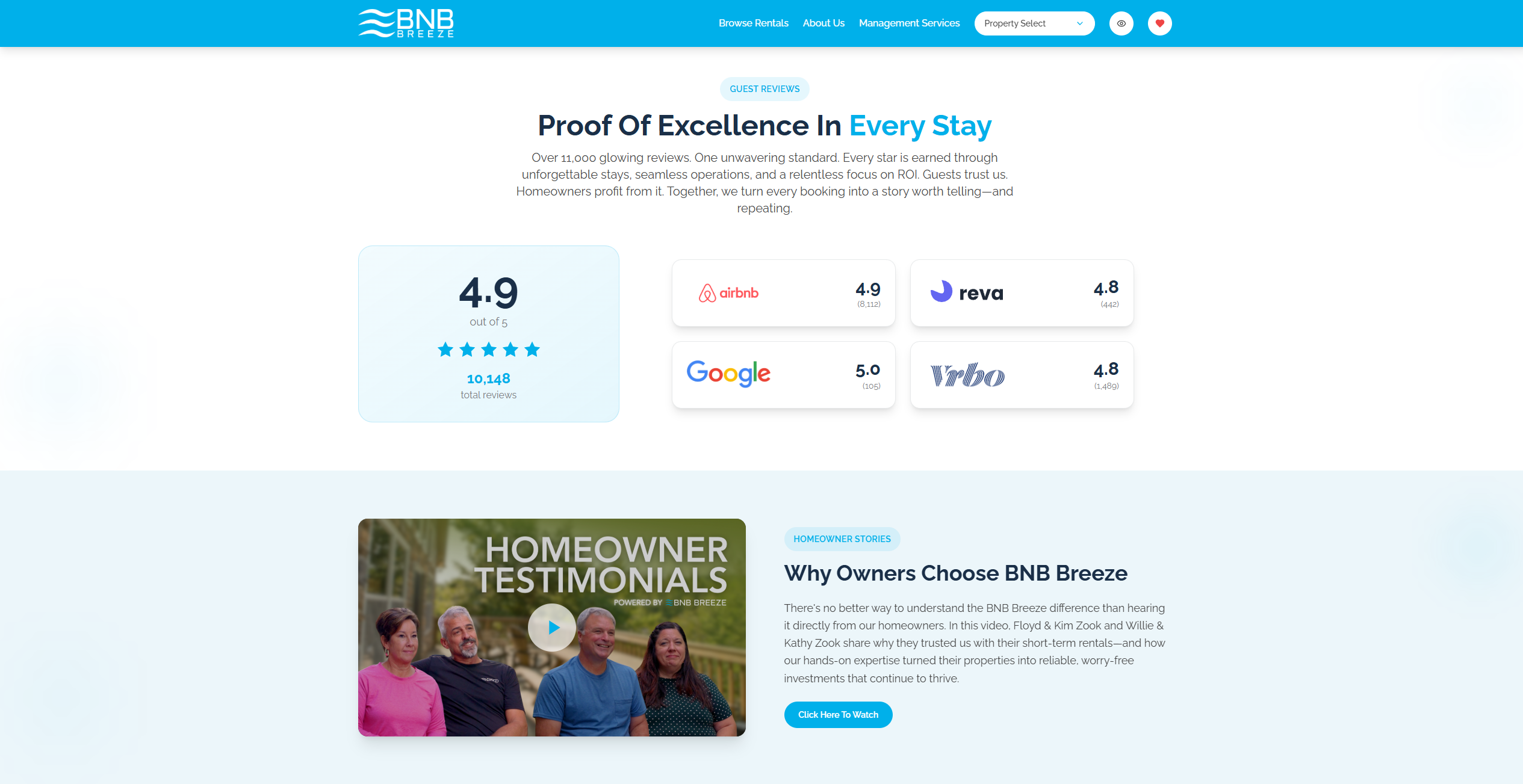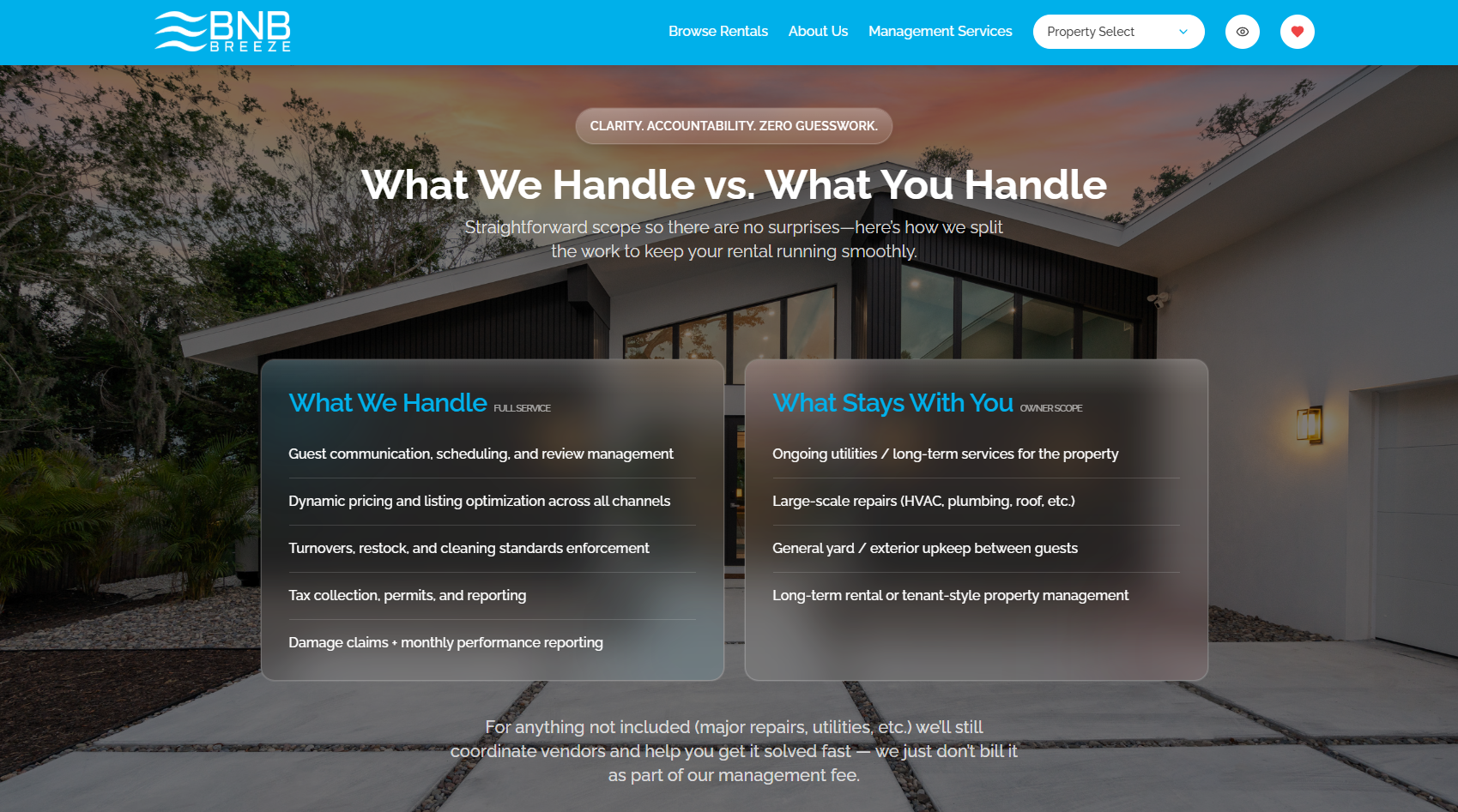 Redesigned the Homeowner Information page for a short‑term rental management company, creating a clear path for property owners to understand services and get started.